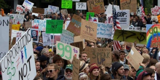 Zwolennicy „okupantów” mówią o akcji jako potrzebnej, oddolnej inicjatywie, znaku mobilizacji społecznej w niesprawiedliwych i trudnych czasach. Przeciwnicy sugerują, że tzw. oburzeni chcą by panował porządek, który doprowadził do kryzysu finansowego. Abstrahując od tych ocen głośne demonstracje w stolicach światowej finansjery muszą zajmować znaczące miejsce w serwisach informacyjnych. Sprawa jest o tyle kłopotliwa, że akcja od początku nie zamierzała identyfikować się z żadną opcją polityczną. Opinia środków masowego przekazu dotycząca zamieszek kształtowała się sama.