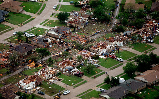 * W Teksasie przeszlo kilkanascie tornad. Pozrywane dachy domów, polamane drzewa, samochody w powietrzu- az cud, ze nie ma ofiar smiertelnych...