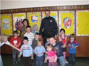 Na jednym z piątkowych zajęć Klubu Słoneczko, pojawił się niecodzienny gość. Był nim policjant oficer Leszek Rosenbaum, który pracuje na komendzie policji w Spring Valley, Rockland County NY. Jest z pochodzenia Polakiem, posługującym się biegle tak językiem angielskim jak i polskim. Dzięki jego wyrozumiałości, nasze promyczki miały okazję nie tylko osobistego spotkania, ale również zadania mu wielu pytań. Ponieważ przyszedł na to spotkanie w pełni umundurowany, mógł zaprezentować dzieciom swoje wyposażenie. Każda rzecz: kajdanki, telefon komórkowy, pistolet, latarka, kamizelka kuloodporna czy pistolet do plastikowych kajdanek wzbudzały wielki podziw wśród uczestników spotkania. Z radością chwaliły się swoją wiedzą, do czego służy każdy z tych przedmiotów.